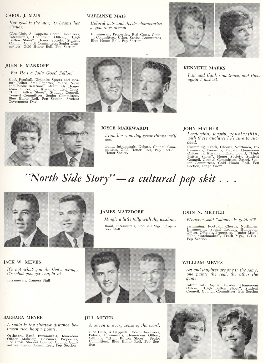 1963 Sheboygan North High School, Page 51: Carol Mais, Marianne Mais, John Mankopf, Kenneth Marks, Joyce Markwardt, John Mather, James Matzdorf, John Metter, Jack Meves, William Meves, Barbara Meyer, Jill Meyer.