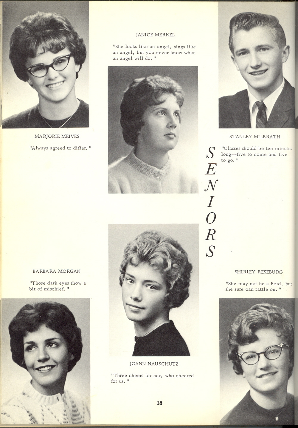 1964 Howards Grove High School, Page 18: Marjorie Mieves, Janice Merkel, Stanley Milbrath, Barbara Morgan, Joann Nauschutz, Shirley Reseburg.