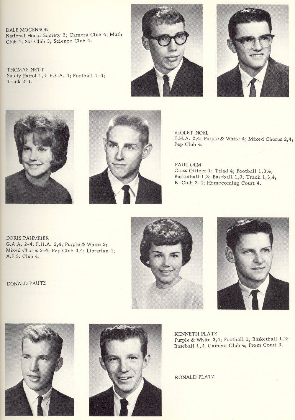 1964 Kiel High School, Page 7: Dale Mogenson, Thomas Nett, Violet Noel, Paul Olm, Doris Pahmeier, Donald Pautz, Kenneth Platz, Ronald Platz.