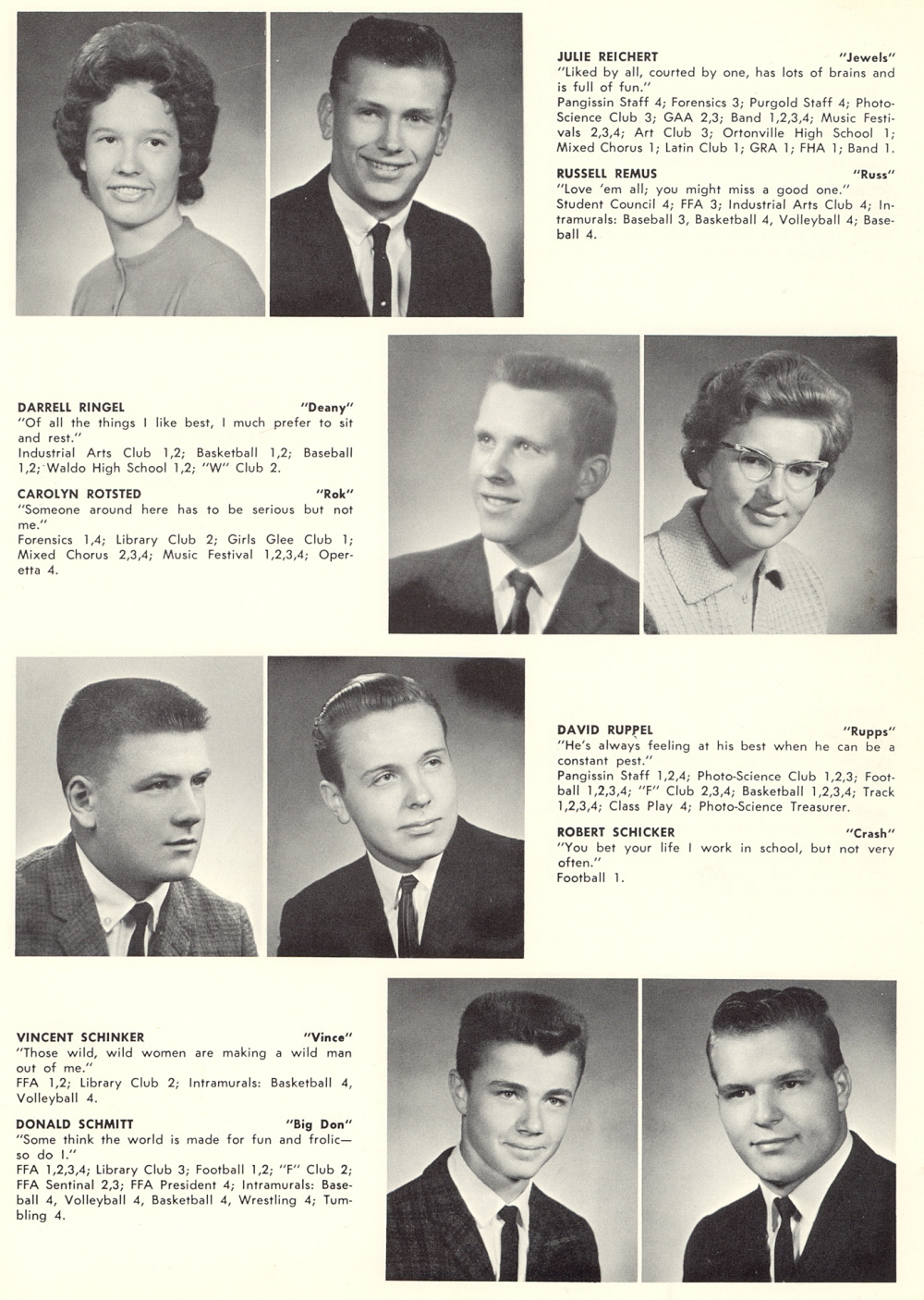 1964 Sheboygan Falls High School, Page 27: Julie Reichert, Russell Remus, Darrell Ringel, Carolyn Rotsted, David Ruppel, Robert Schicker, Vincent Schinker, Donald Schmitt.