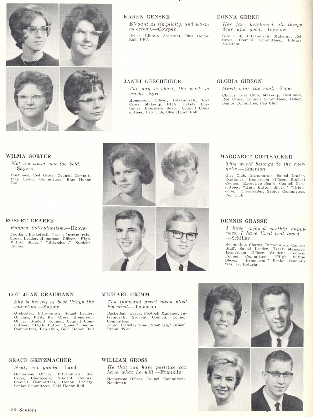 1964 Sheboygan North High School, Page 26: Karen Genske, Donna Gerke, Janet Gescheidle, Gloria Gibson, Wilma Gorter, Margaret Gottsacker, Robert Graefe, Dennis Grasse, Lou Jean Graumann, Michael Grimm, Grace Gritzmacher, William Gross.
