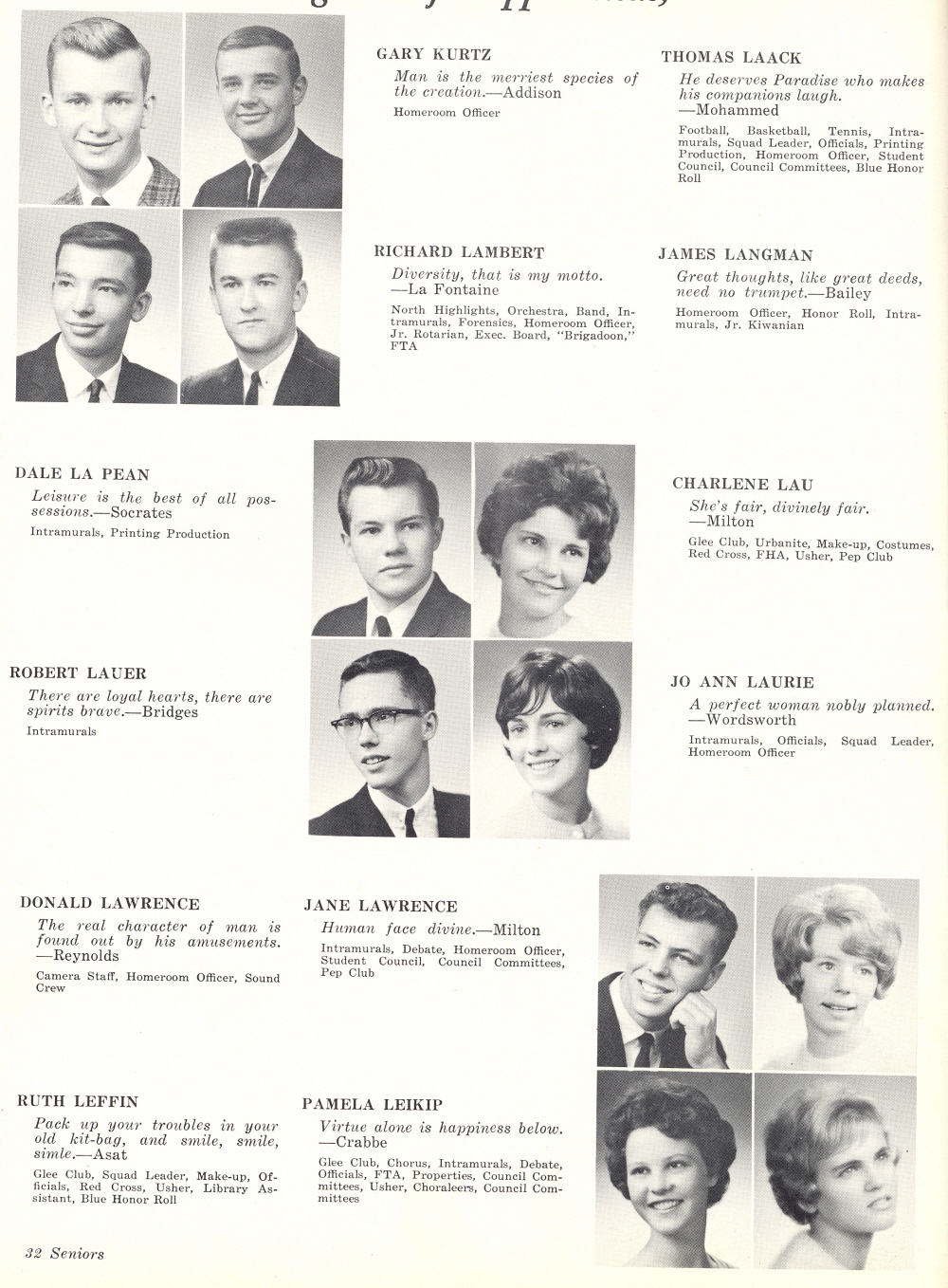 1964 Sheboygan North High School, Page 32: Gary Kurtz, Thomas Laack, Richard Lambert, James Langman, Dale La Pean, Charlene Lau, Robert Lauer, Jo Ann Laurie, Donald Lawrence, Jane Lawrence, Ruth Leffin, Pamela Leikip.