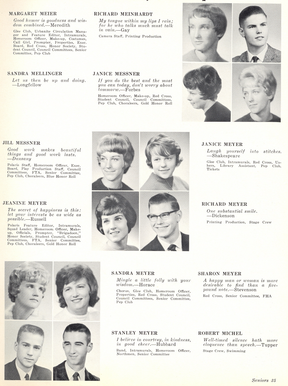 1964 Sheboygan North High School, Page 35: Margaret Meier, Richard Meinhardt, Sandra Mellinger, Janice Messner, Jill Messner, Janice Meyer, Jeanine Meyer, Richard Meyer, Sandra Meyer, Sharon Meyer, Stanley Meyer, Robert Michel.