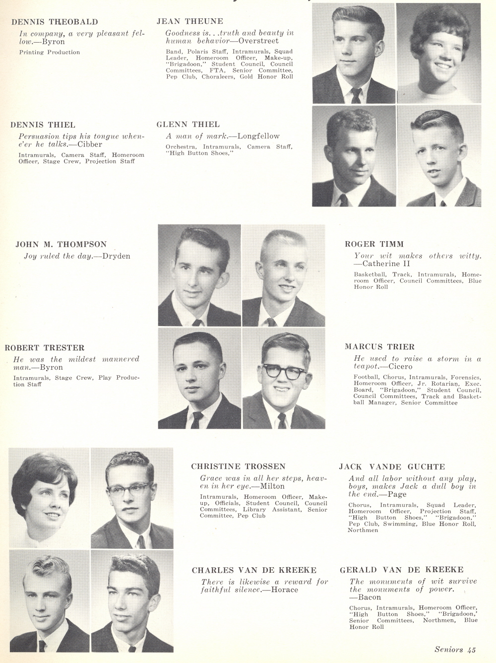 1964 Sheboygan North High School, Page 45: Dennis Theobald, Jean Theune, Dennis Thiel, Glenn Thiel, John Thompson, Roger Timm, Robert Trester, Marcus Trier, Christine Trossen, Jack Vande Guchte, Charles Van De Kreeke, Gerald Van De Kreeke.