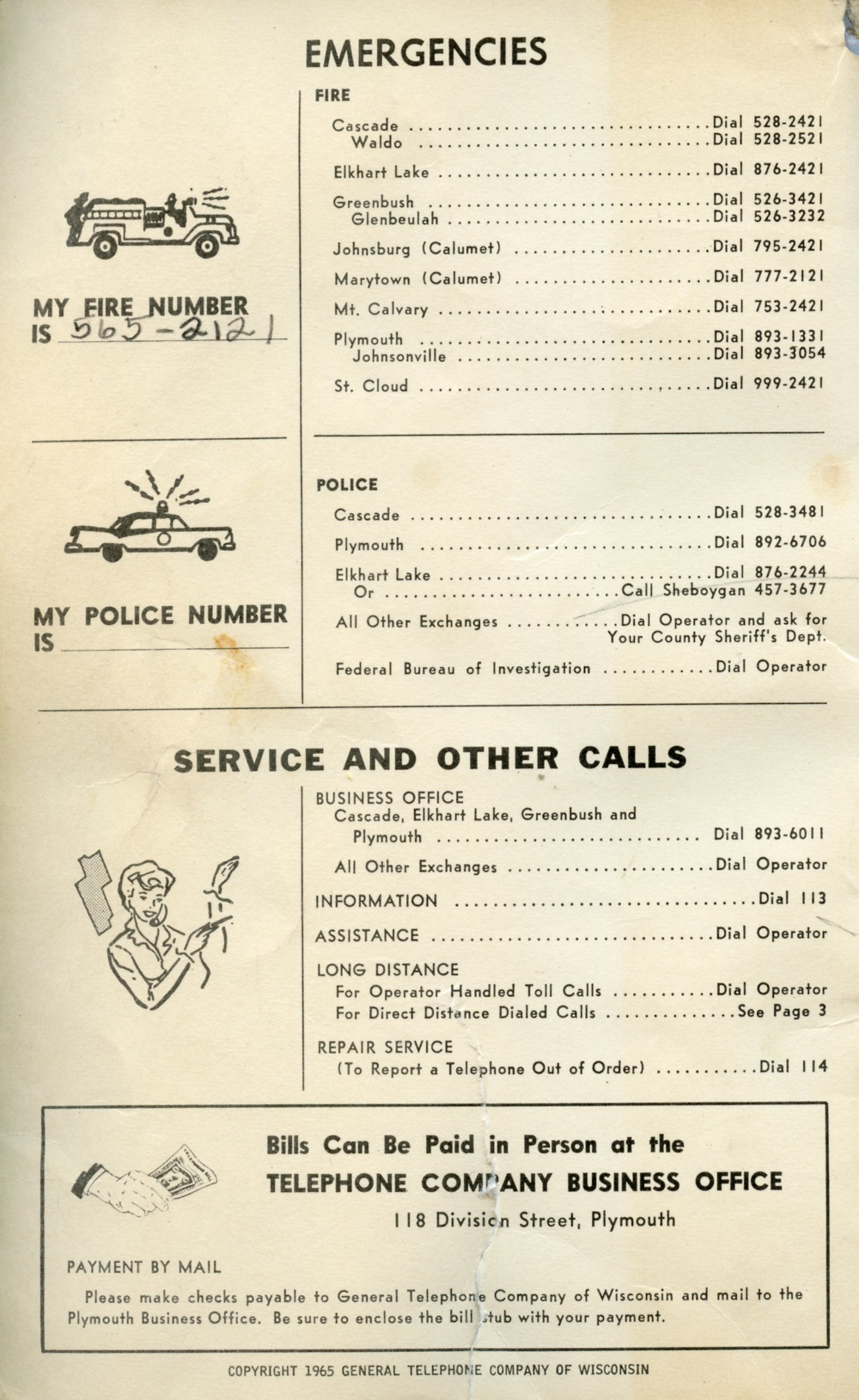 1965 General Telephone Company Telephone Book Inside Front Cover: