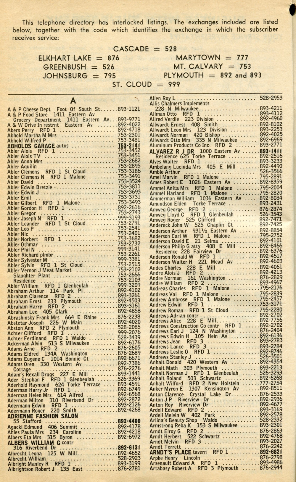 1965 General Telephone Company Telephone Book Page 10: A and P - Artabasy.
