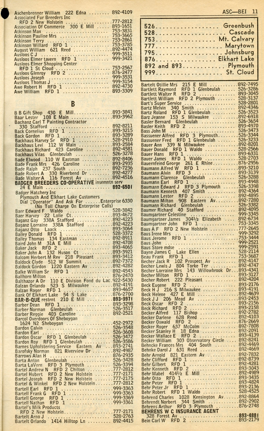 1965 General Telephone Company Telephone Book Page 11: Aschenbrenner - Bein.
