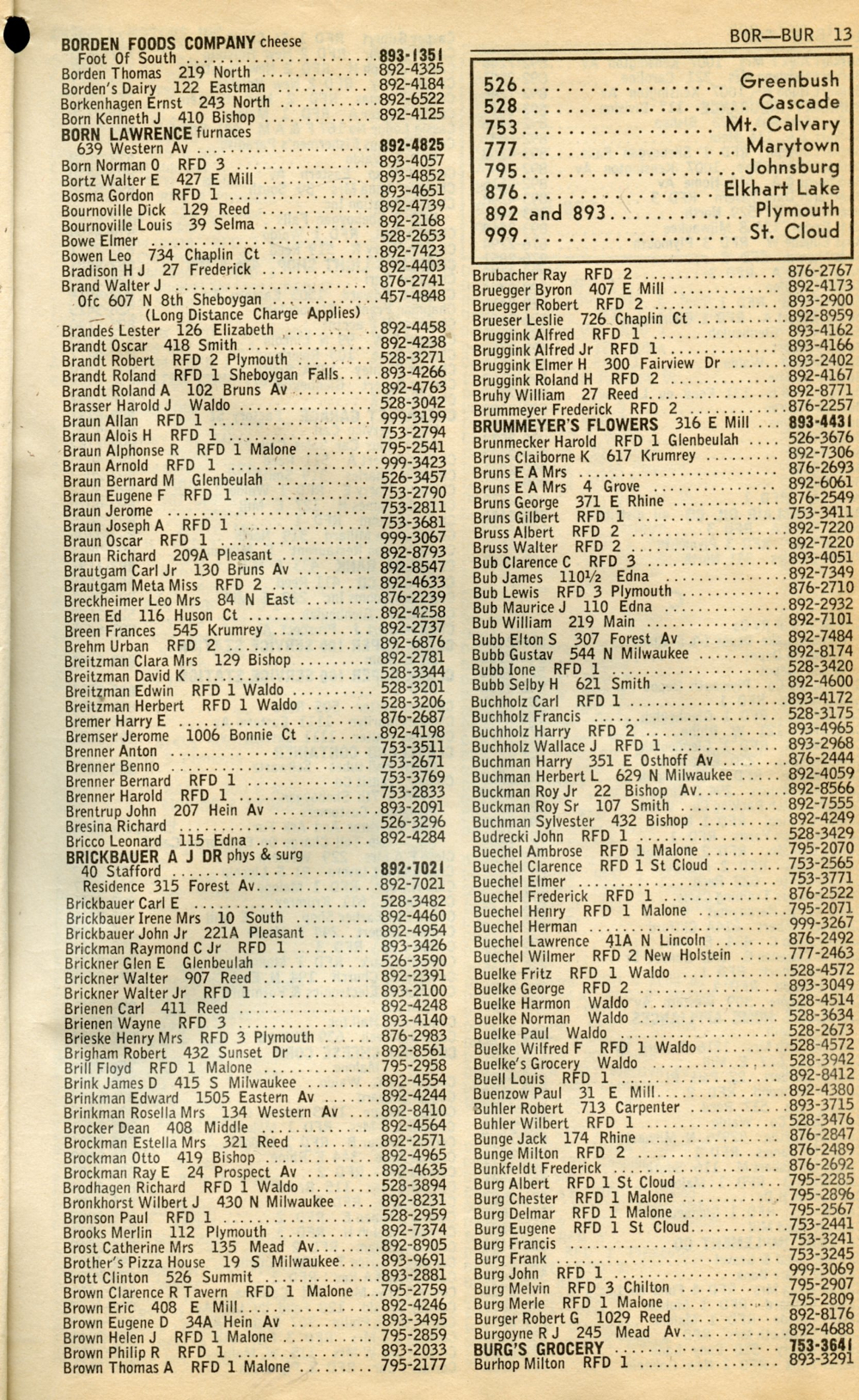 1965 General Telephone Company Telephone Book Page 13: Borden - Burhop.