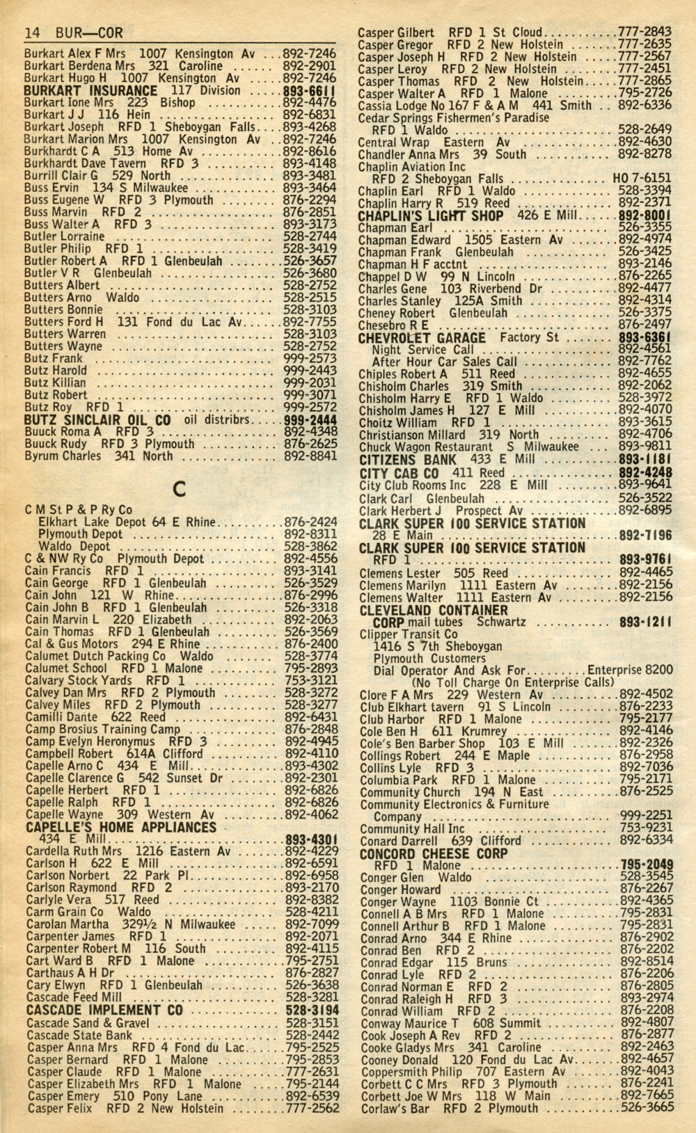 1965 General Telephone Company Telephone Book Page 14: Burkart - Corlaw.