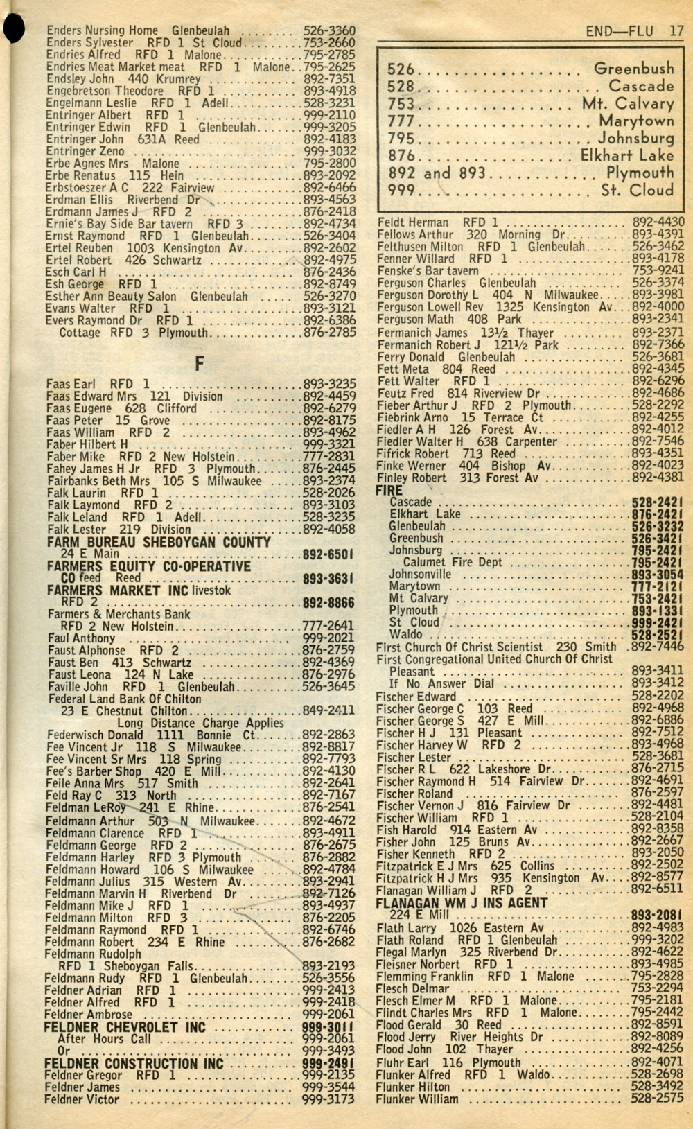 1965 General Telephone Company Telephone Book Page 17: Enders - Flunker.