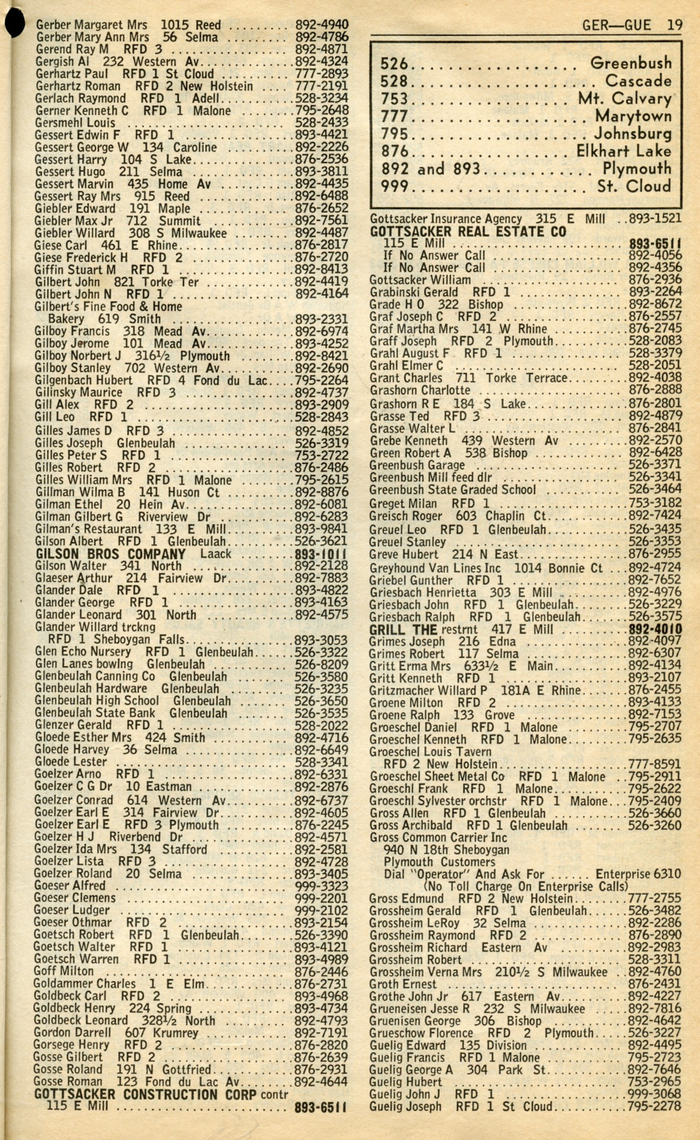 1965 General Telephone Company Telephone Book Page 19: Gerber - Guelig.