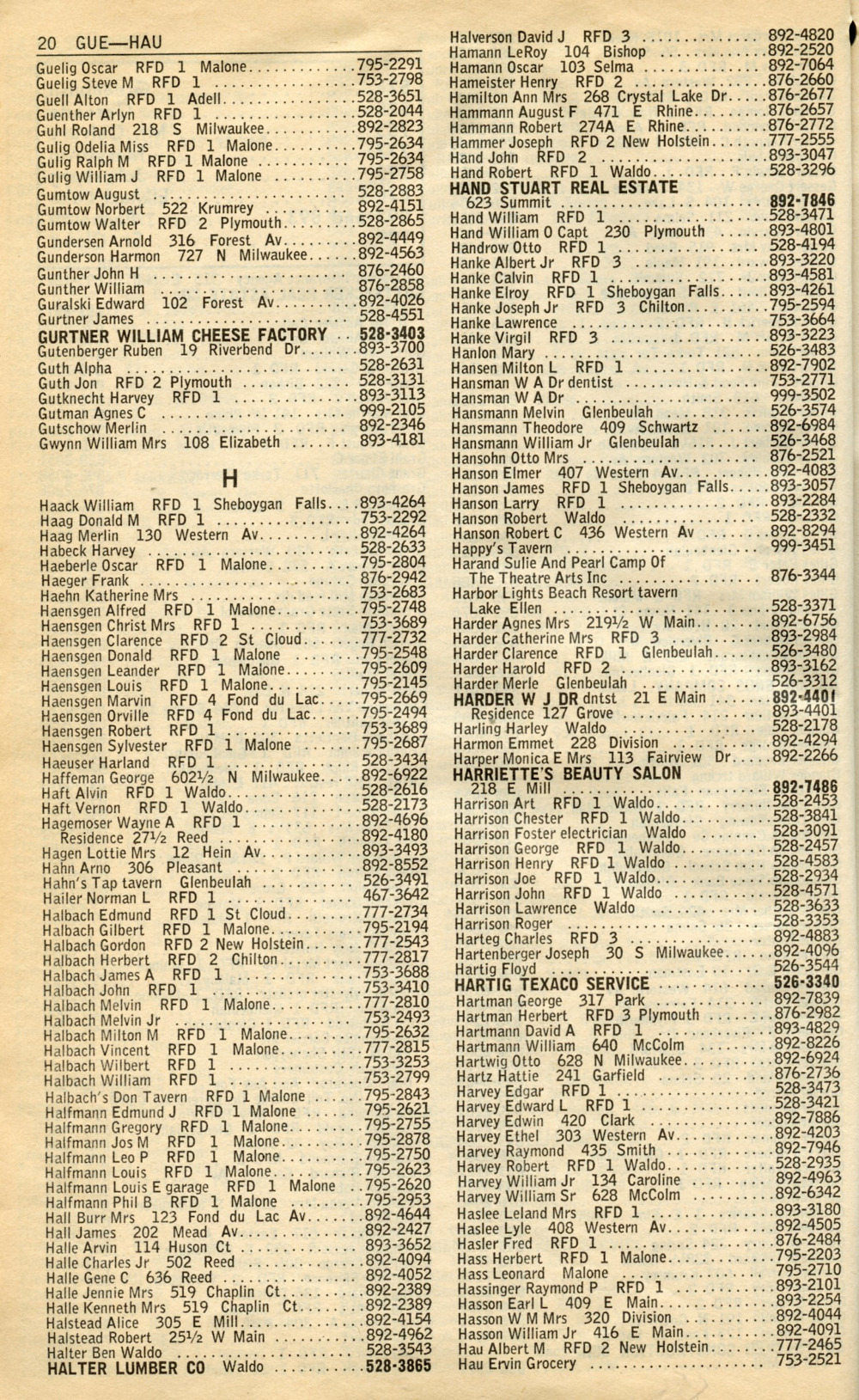 1965 General Telephone Company Telephone Book Page 20: Guelig - Hau.
