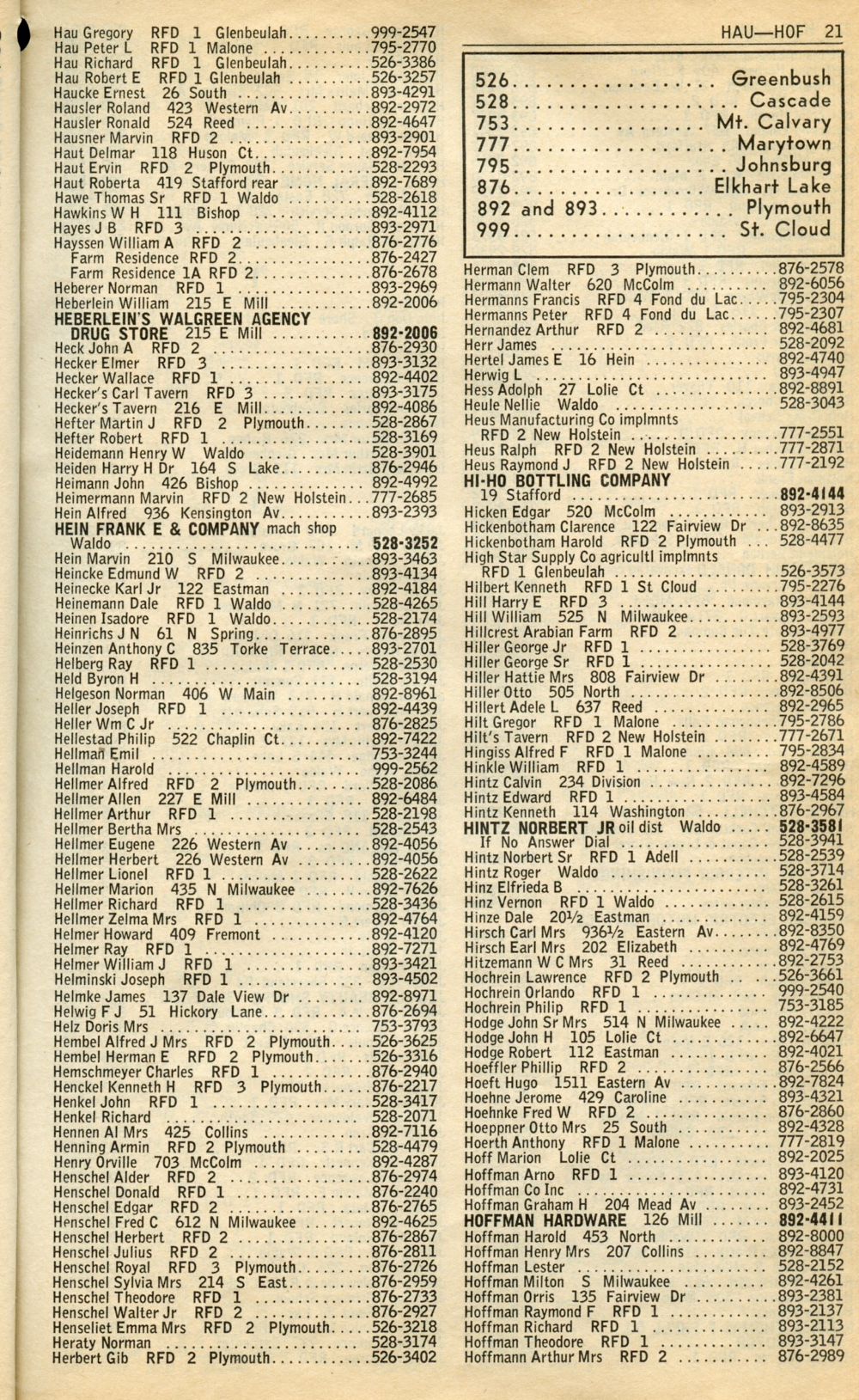 1965 General Telephone Company Telephone Book Page 21: Hau - Hoffmann.