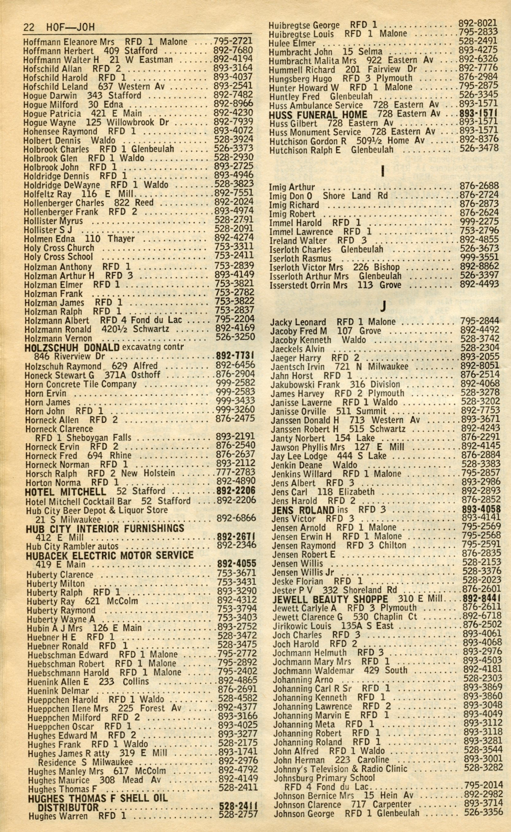 1965 General Telephone Company Telephone Book Page 22: Hoffmann - Johnson.
