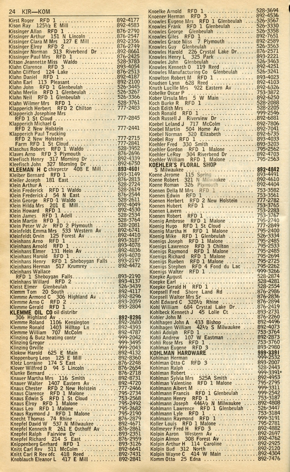 1965 General Telephone Company Telephone Book Page 24: Kirst - Komm.