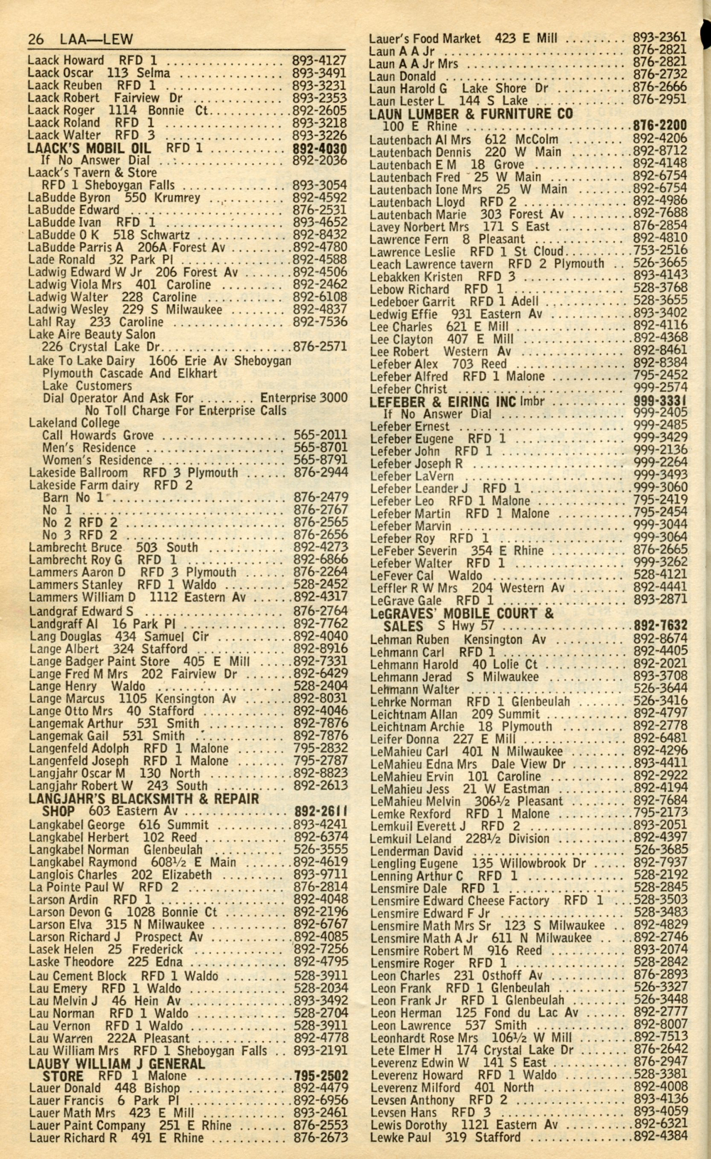 1965 General Telephone Company Telephone Book Page 26: Laack - Lewke.
