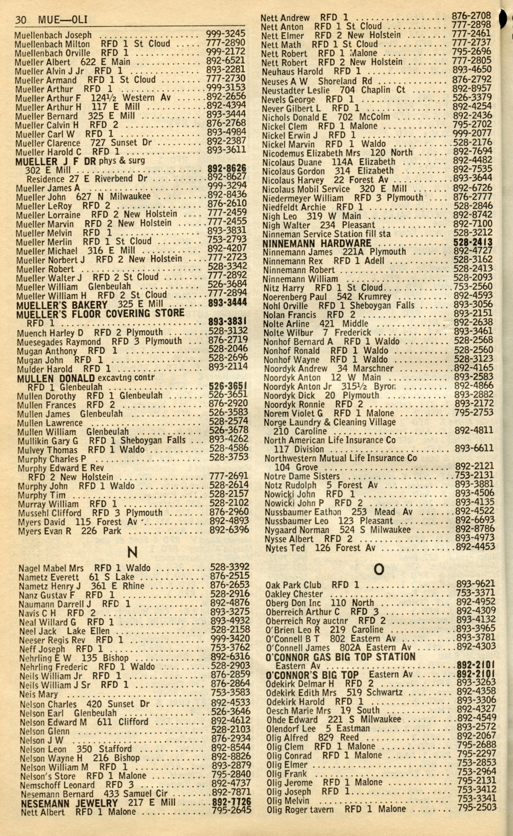 1965 General Telephone Company Telephone Book Page 30: Muellenbach - Olig.