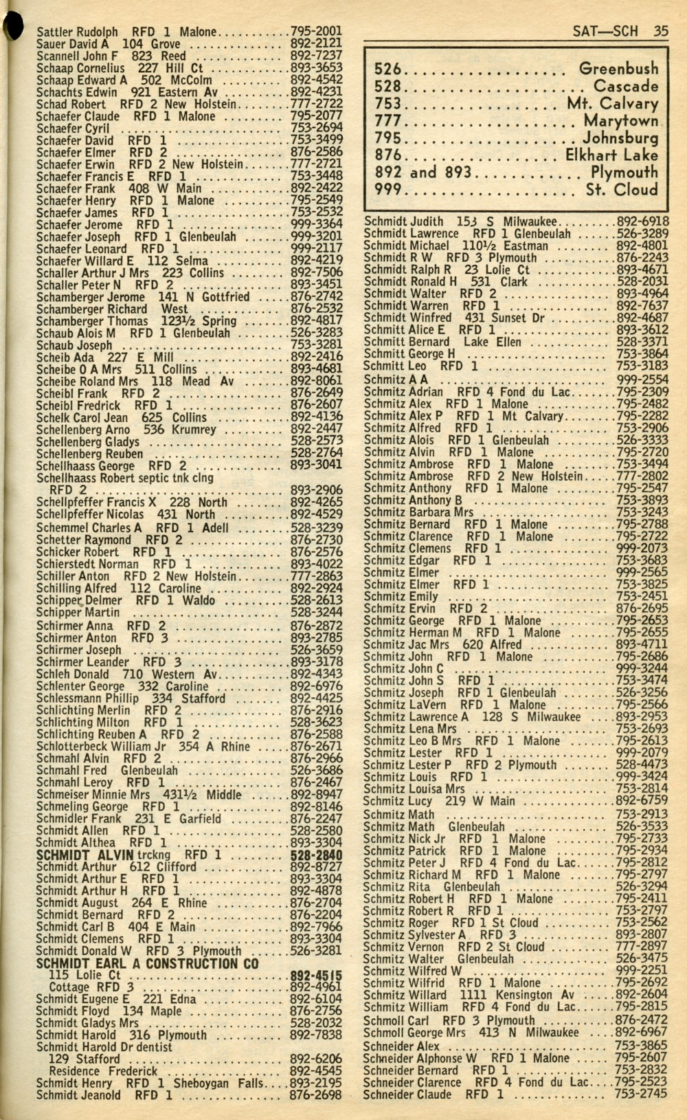 1965 General Telephone Company Telephone Book Page 35: Sattler - Schneider.