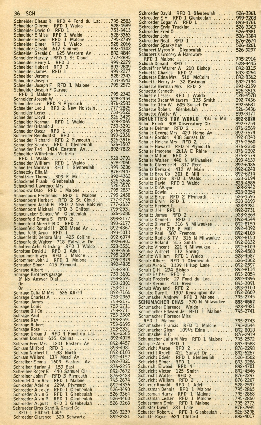 1965 General Telephone Company Telephone Book Page 36: Schneider - Schutte.