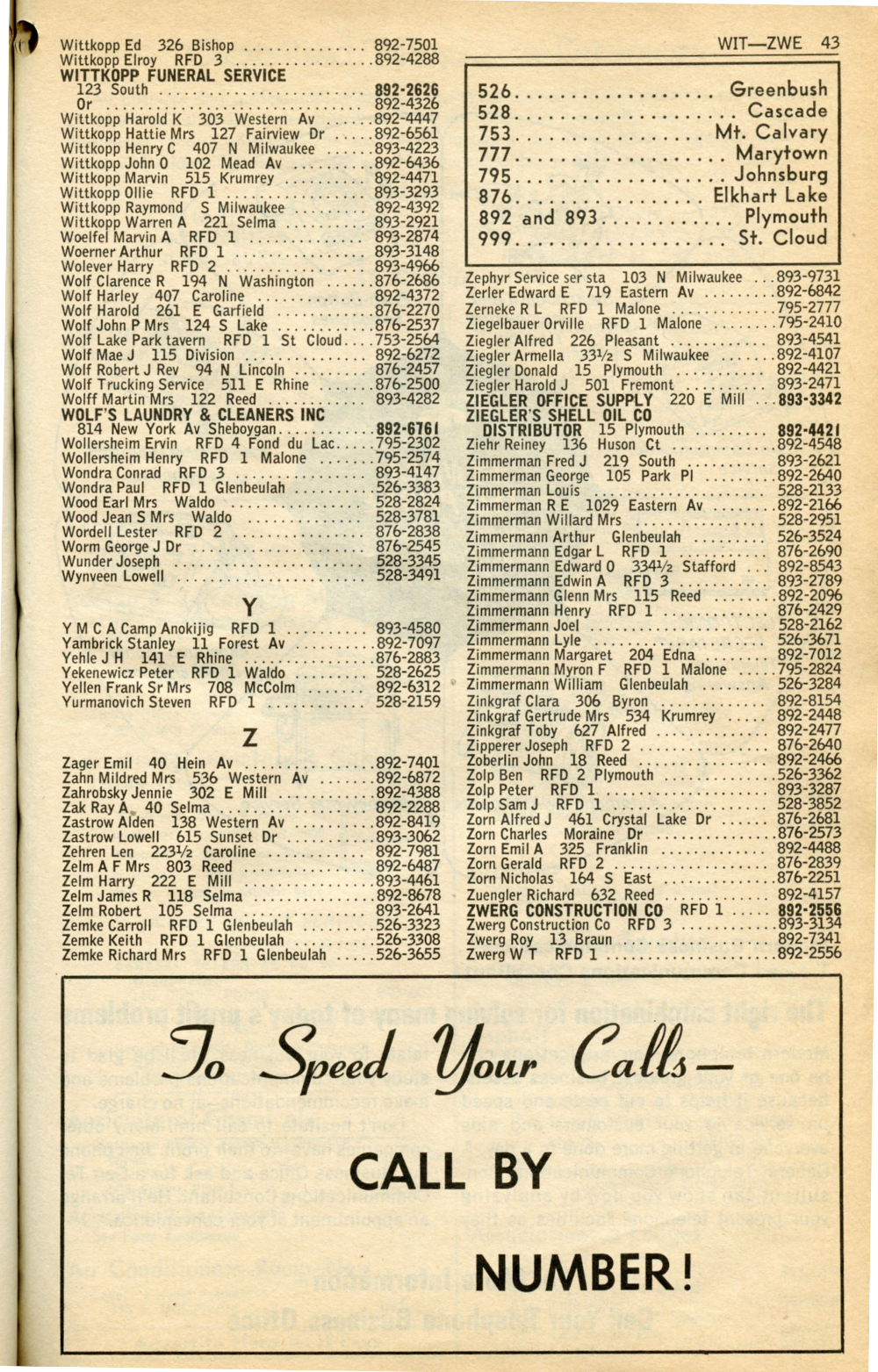 1965 General Telephone Company Telephone Book Page 43: Wittkopp - Zwerg.