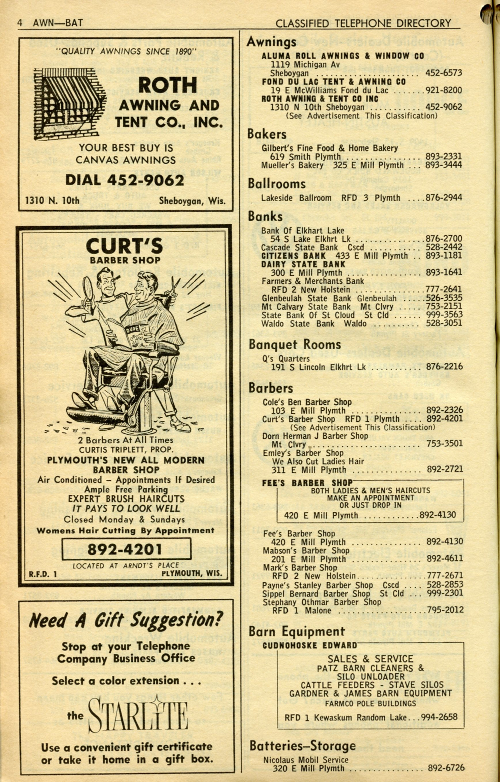1965 General Telephone Company Telephone Book Page 48: Awnings - Batteries.