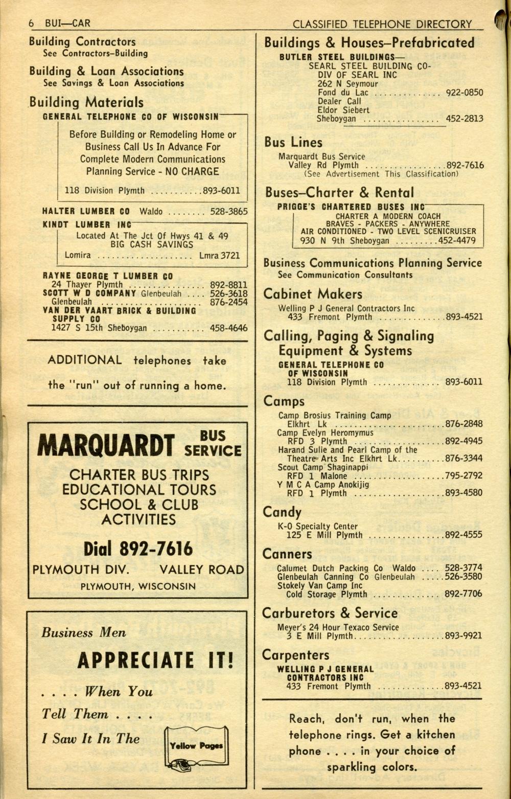 1965 General Telephone Company Telephone Book Page 50: Building Contractors - Carpenters.