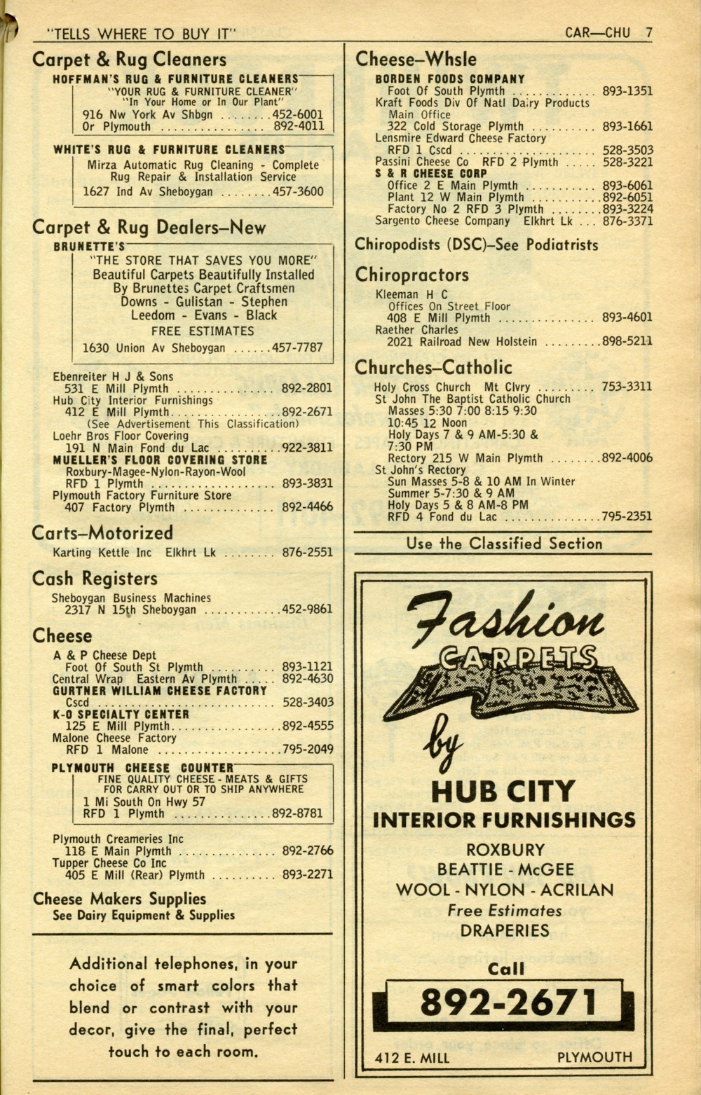 1965 General Telephone Company Telephone Book Page 51: Carpet - Churches.