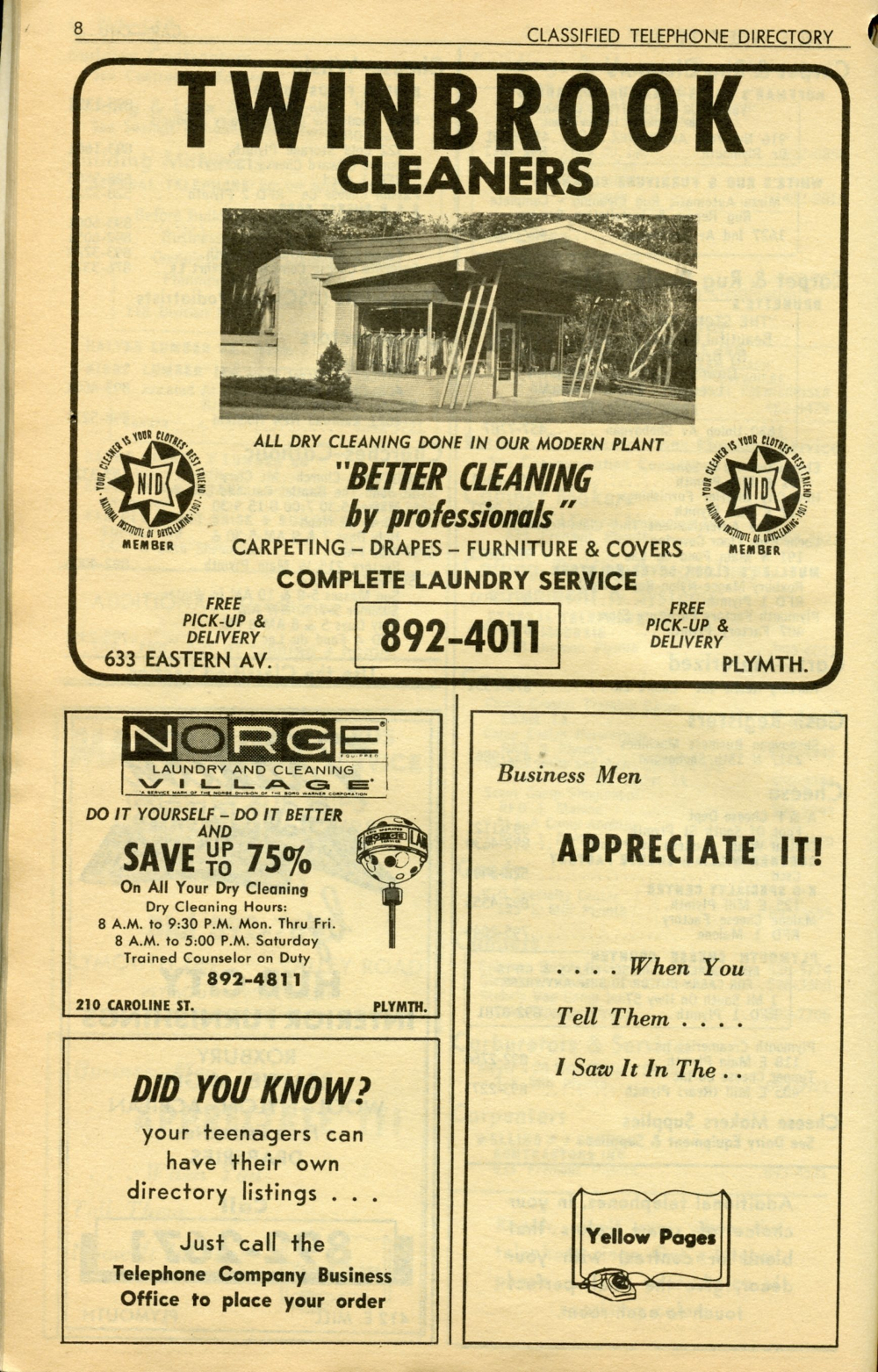 1965 General Telephone Company Telephone Book Page 52: Advertisments.