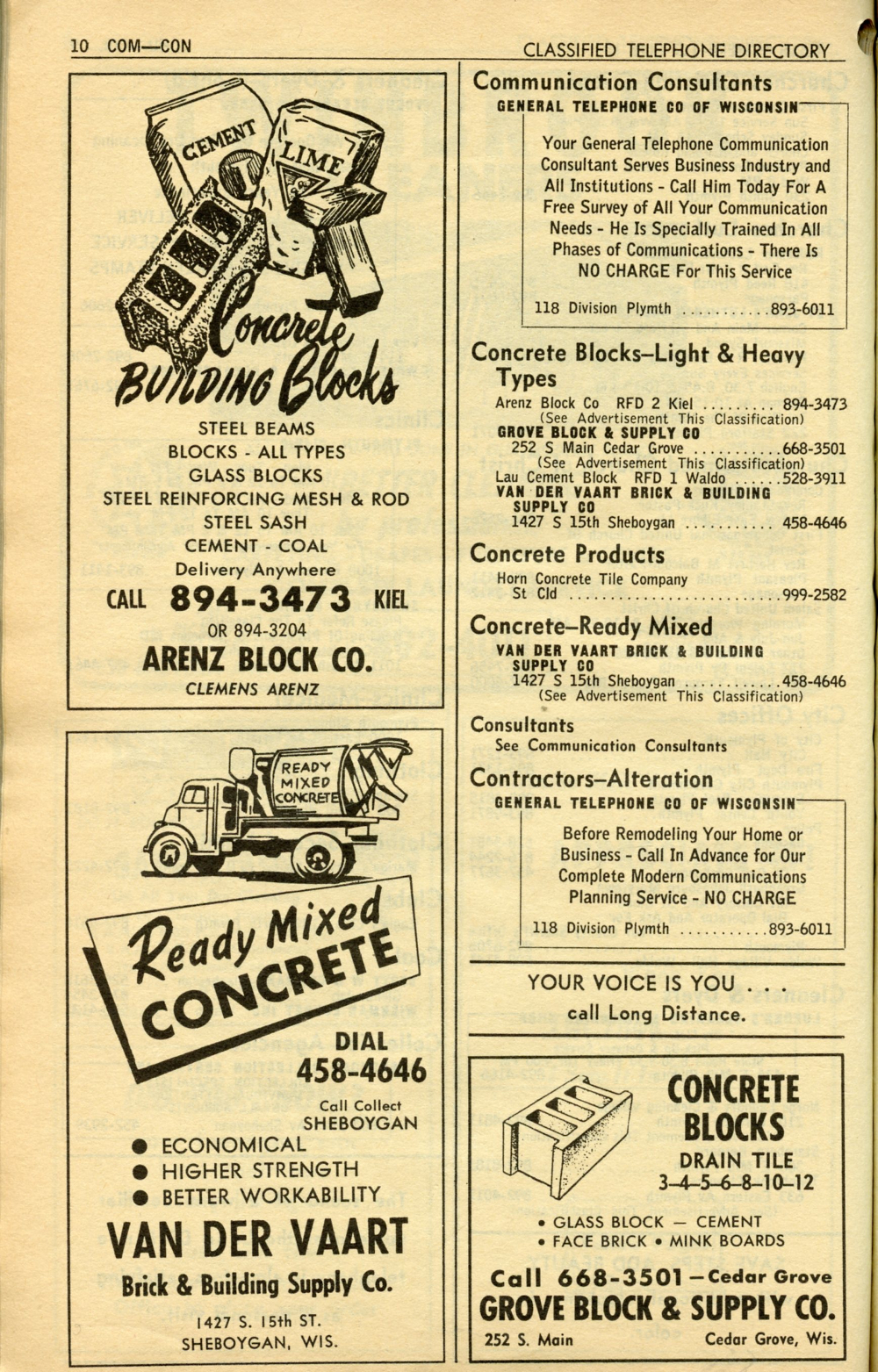 1965 General Telephone Company Telephone Book Page 54: Communication - Contractors.