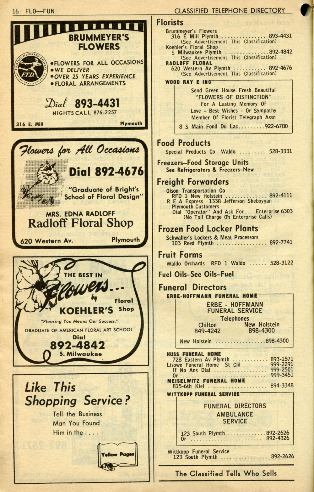 1965 General Telephone Company Telephone Book Page 60: Florists - Funeral.