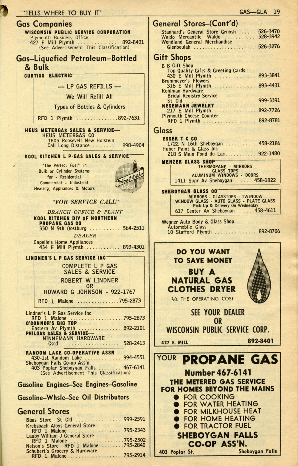 1965 General Telephone Company Telephone Book Page 63: Gas Companies - Glass.