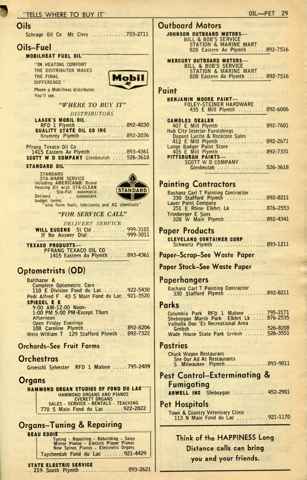 1965 General Telephone Company Telephone Book Page 73: Oils - Pet Hospitals.