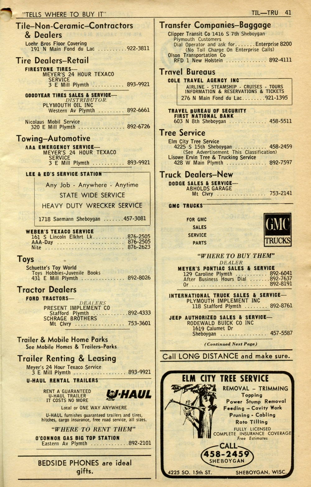 1965 General Telephone Company Telephone Book Page 85: Tile - Truck Dealers.
