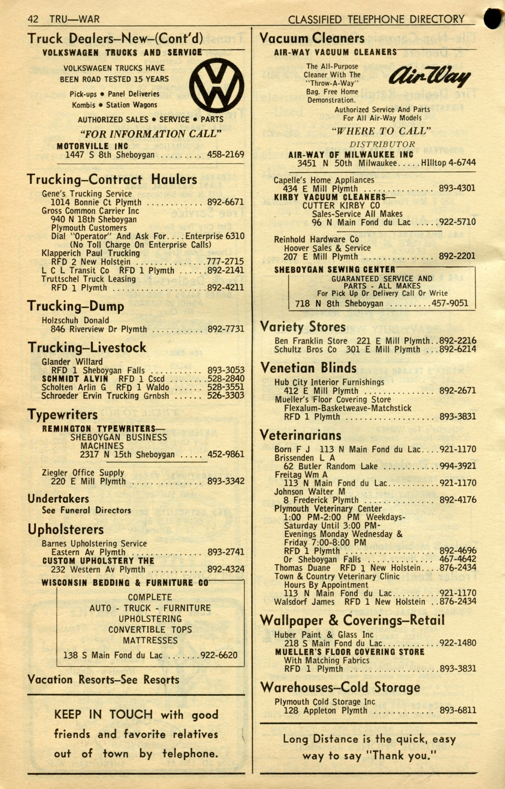 1965 General Telephone Company Telephone Book Page 86: Truck Dealers - Warehouses.