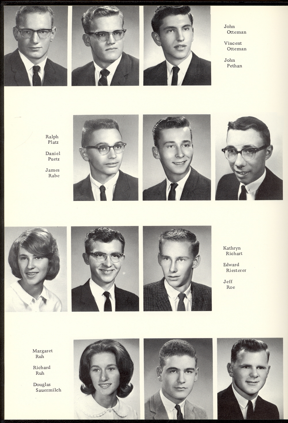 1965 Kiel High School, Page 72: John Otteman, Vircent Otteman, John Pethan, Ralph Platz, Daniel Puetz, James Rabe, Kathryn Richart, Edward Riesterer, Jeff Roe, Margaret Ruh, Richart Ruh, Douglas Sauermilch.