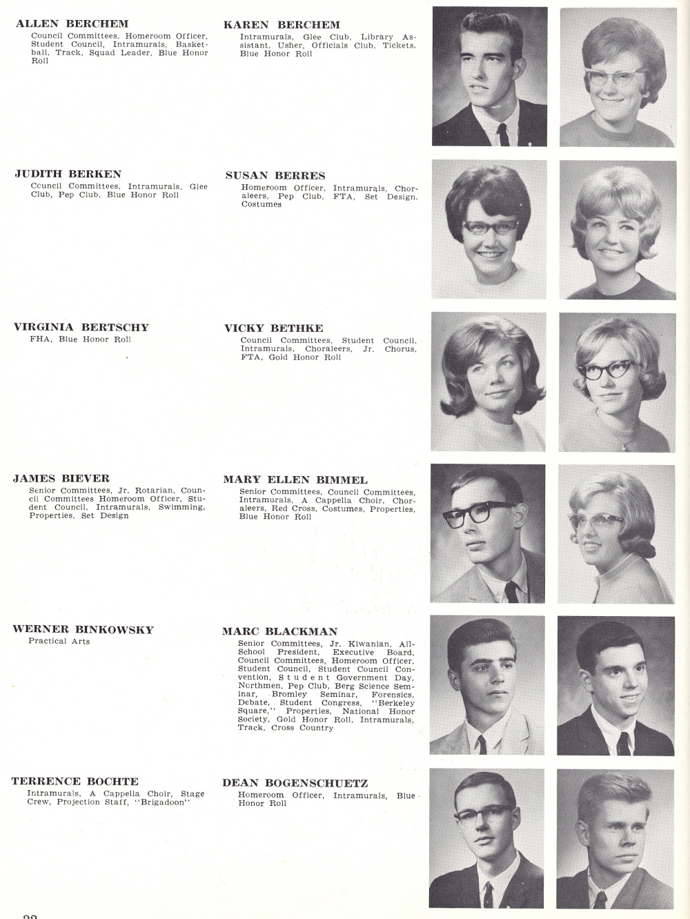 1965 Sheboygan North High School, Page 22: Allen Berchem, Karen Berchem, Judith Berken, Susan Berres,Virginia Bertschy, Vicky Bethke, James Biever, Mary Bimmel, Werner Binkowsky, Marc Blackman, Terrence Bochte, Dean Bogenschuetz.