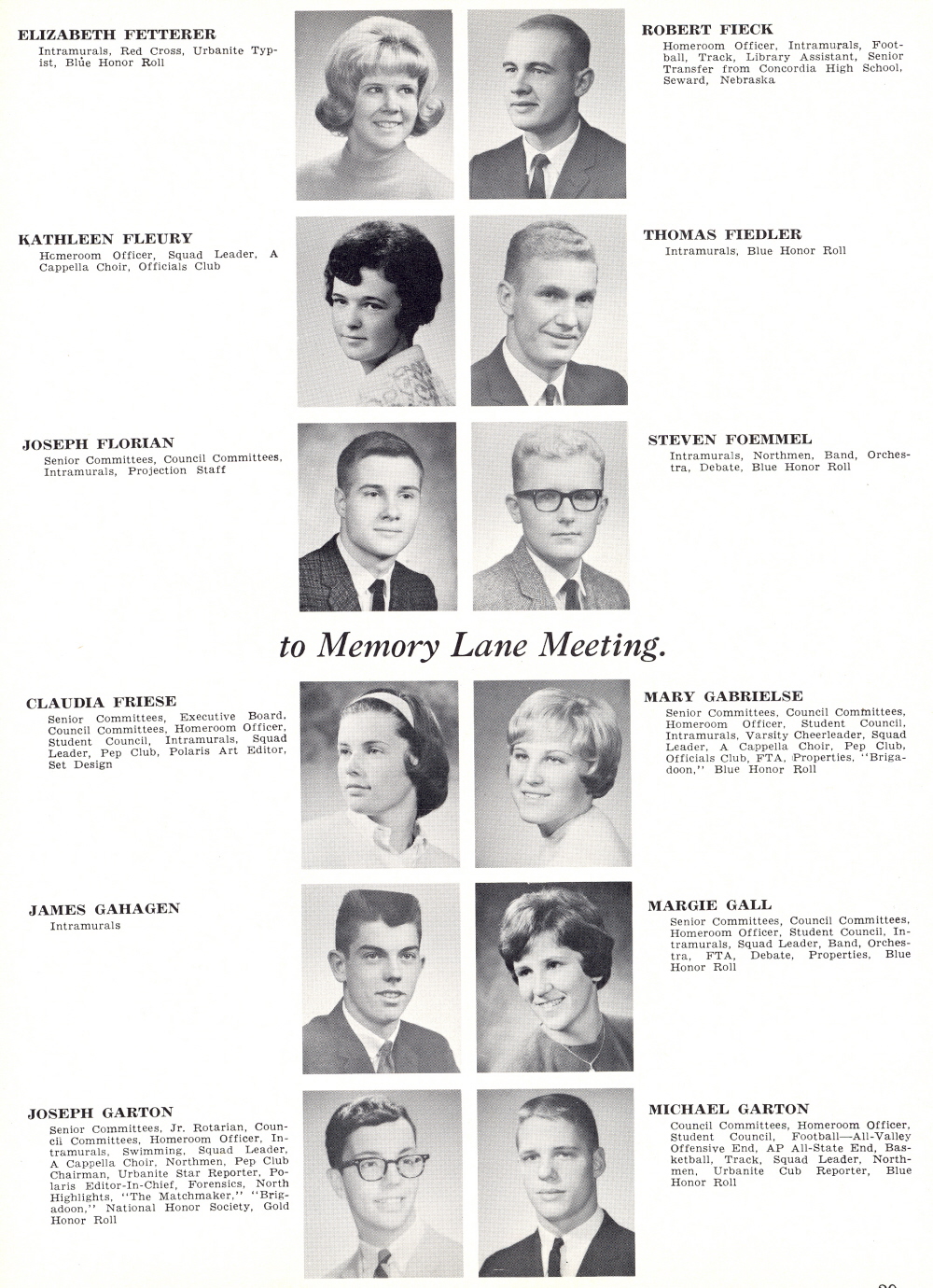 1965 Sheboygan North High School, Page 29: Elizabeth Fetterer, Robert Fieck, Kathleen Fleury, Thomas Fiedler, Joseph Florian, Steven Foemmel, Claudia Friese, Mary Gabrielse, James Gahagen, Margie Gall, Joseph Garton, Michael Garton.