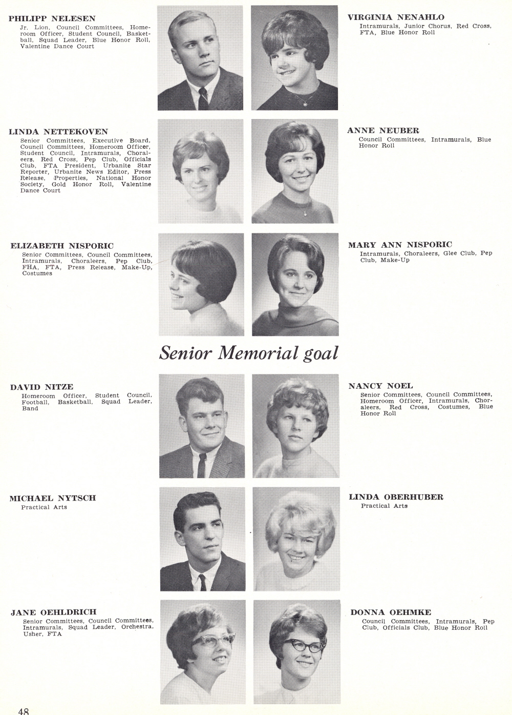 1965 Sheboygan North High School, Page 48: Philipp Nelesen, Virginia Nenahlo, Linda Nettekoven, Anne Neuber, Elizabeth Nisporic, Mary Ann Nisporic, David Nitze, Nancy Noel, Michael Nytsch, Linda Oberhuber, Jane Oehldrich, Donna Oehmke.
