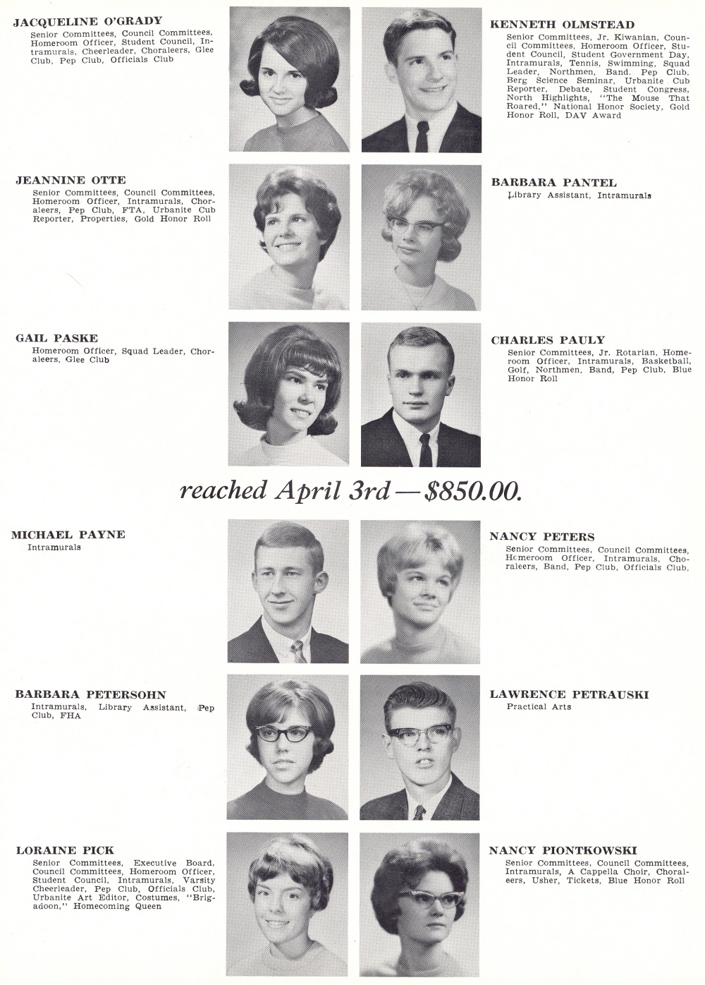1965 Sheboygan North High School, Page 49: Jacqueline O'Grady, Kenneth Olmstead, Jeannine Otte, Barbara Pantel, Gail Paske, Charles Pauly, Michael Payne, Nancy Peters, Barbara Petersohn, Lawrence Petrauski, Loraine Pick, Nancy Piontkowski.