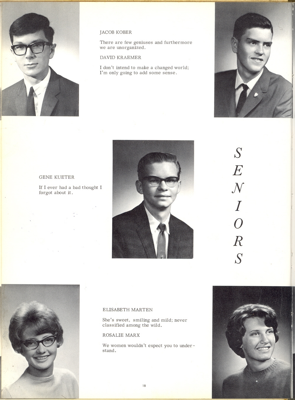 1966 Howards Grove High School, Page 18: Jacob Kober, David Kraemer, Gene Kueter, Elisabeth Marten, Rosalie Marx.