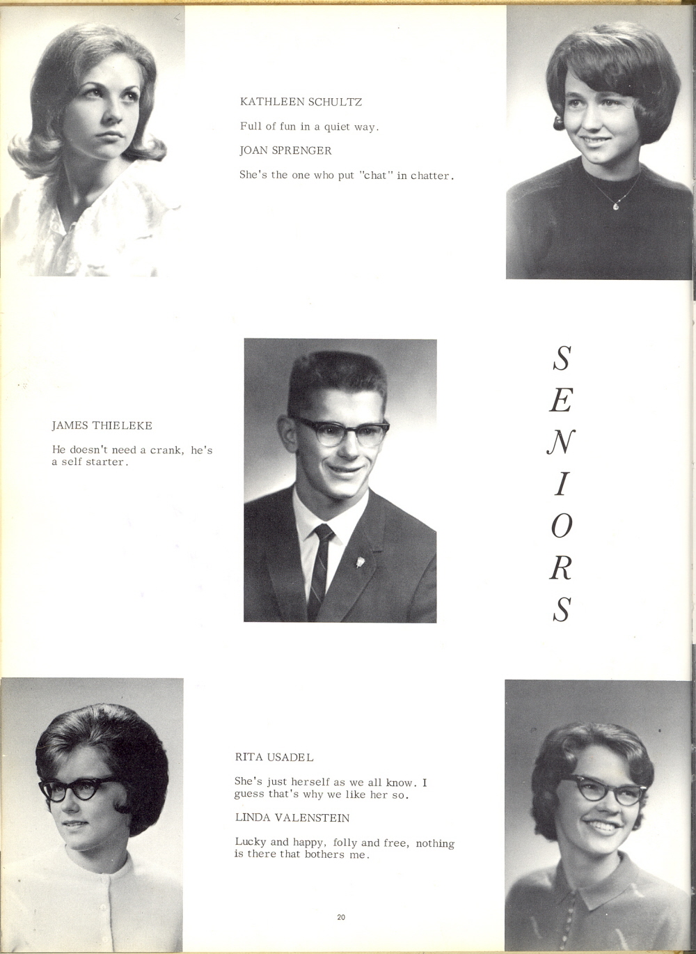1966 Howards Grove High School, Page 20: Kathleen Schultz, Joan Sprenger, James Thieleke, Rita Usadel, Linda Valenstein.