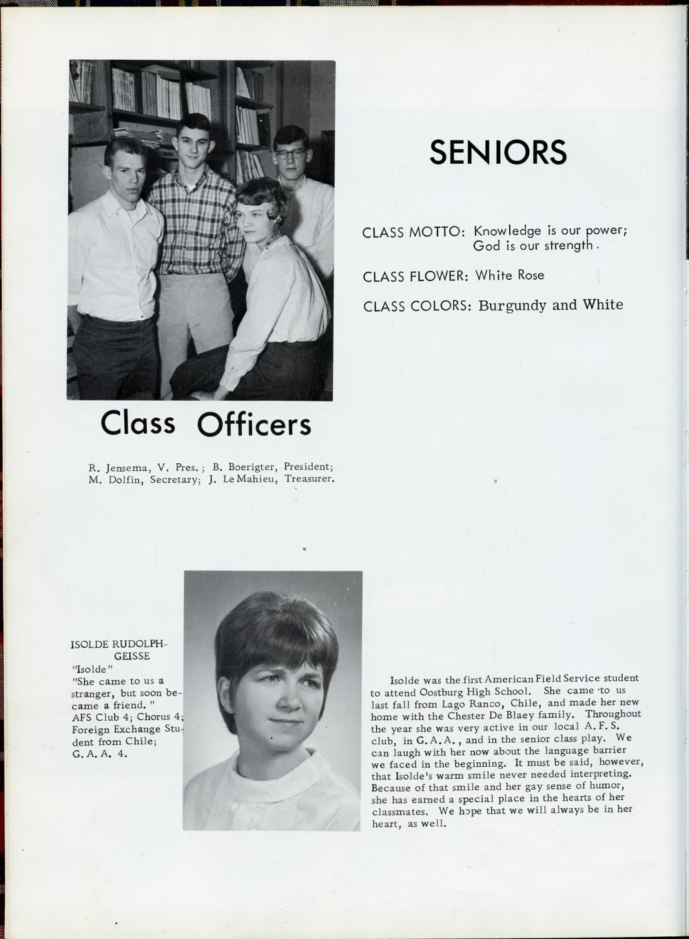 1966 Oostburg High School Yearbook Page 6: Isolde Rudolph Geisse.