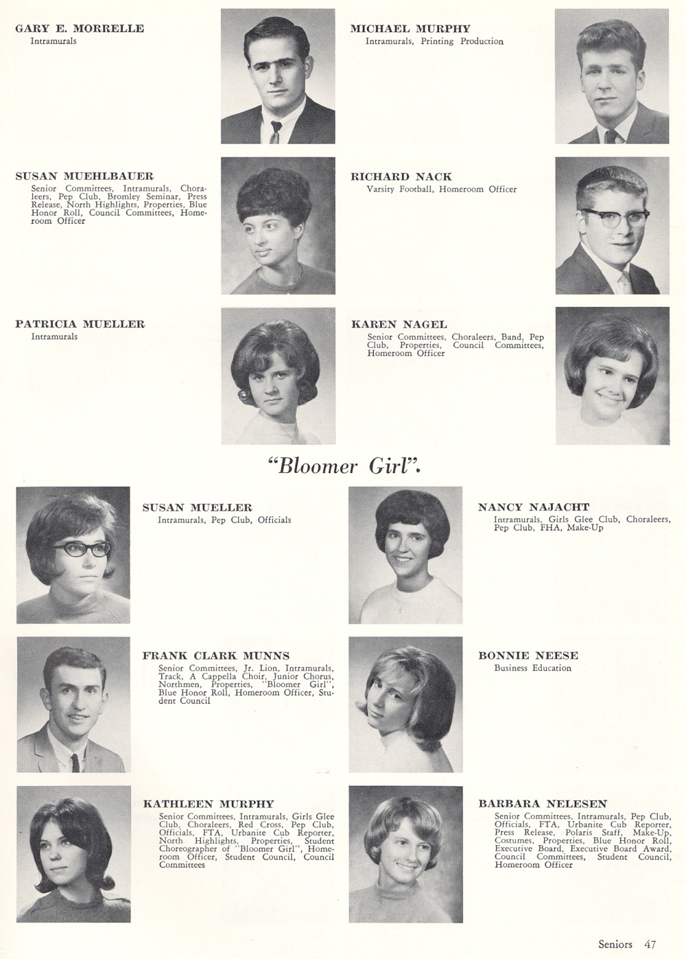1966 Sheboygan North High School, Page 47: Gary E. Morrelle, Susan Muehlbauer, Patricia Mueller, Susan Mueller, Frank Clark Munns, Kathleen Murphy, Michael Murphy, Richard Nack, Karen Nagel, Nancy Najacht, Bonnie Neese, Barbara Nelesen.