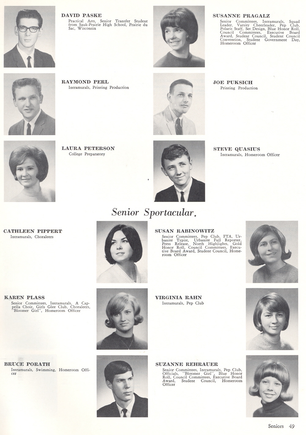 1966 Sheboygan North High School, Page 49: David Paske, Raymond Perl, Laura Peterson, Cathleen Pippert, Karen Plass, Bruce Porath, Susanne Pragalz, Joe Puksich, Steve Quasius, Susan Rabinowitz, Virginia Rahn, Suzanne Rehrauer.