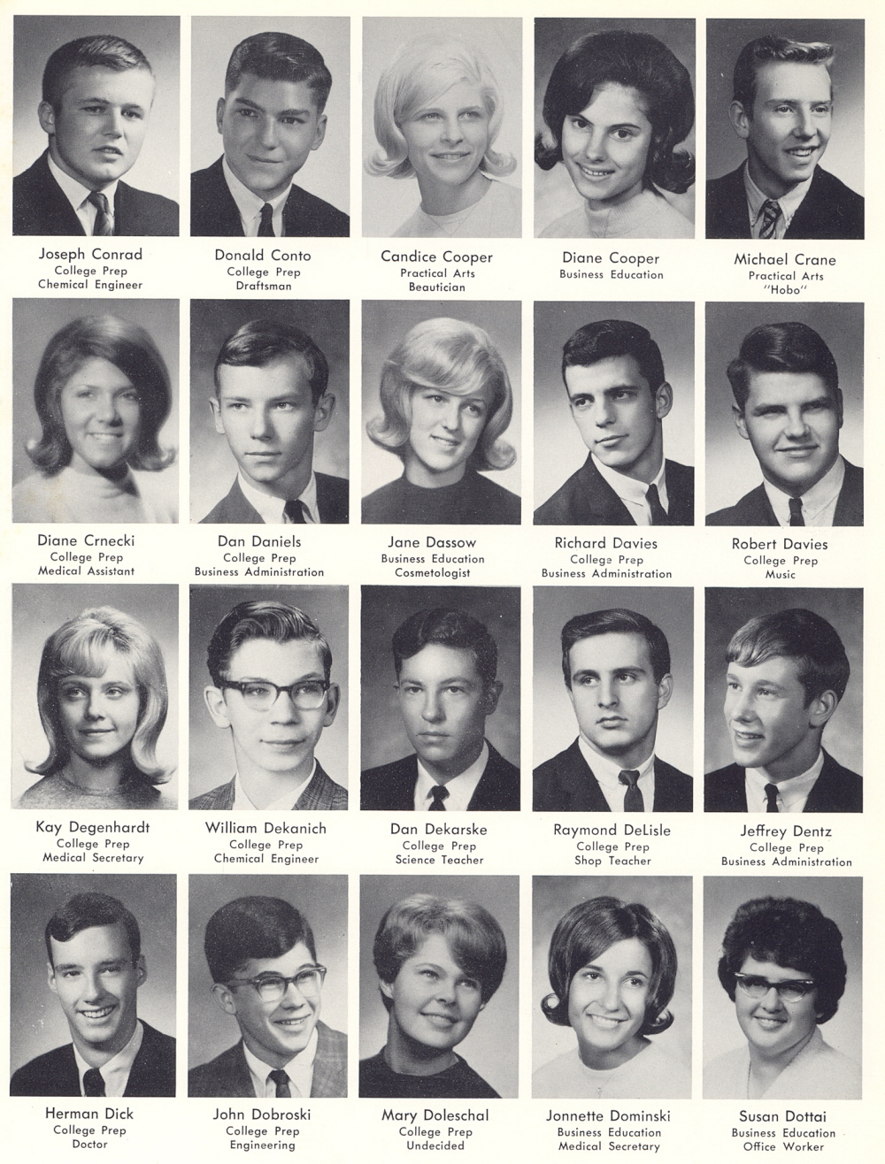High School, Page 41: Joseph Conrad, Donald Conto, Candice Cooper, Diane Cooper, Michael Crane, Diane Crnecki, Dan Daniels, Jane Dassow, Richard Davies, Robert Davies, Kay Degenhardt, William Dekanich, Dan Dekarske, Raymond DeLisle, Jeffrey Dentz, Herman Dick, John Dobroski, Mary Doleschal, Jonnette Dominski, Susan Dottai.