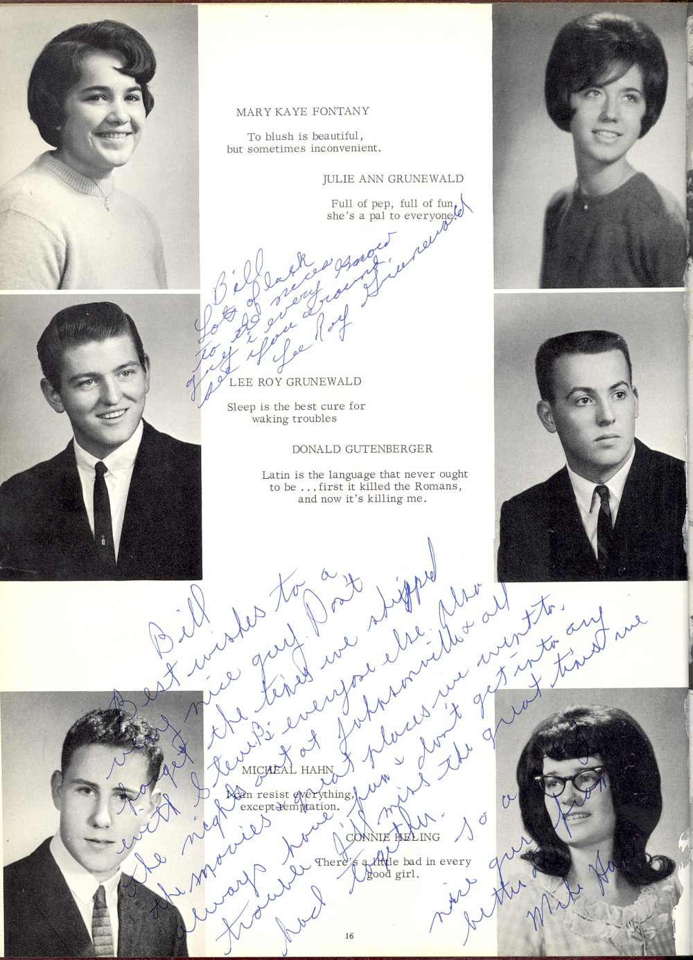 1967 Howards Grove High School, Page 16: Mary Kaye Fontany, Julie Ann Grunewald, Lee Roy Grunewald, Donald Gutenberger, Michael Hahn, Connie Heling.