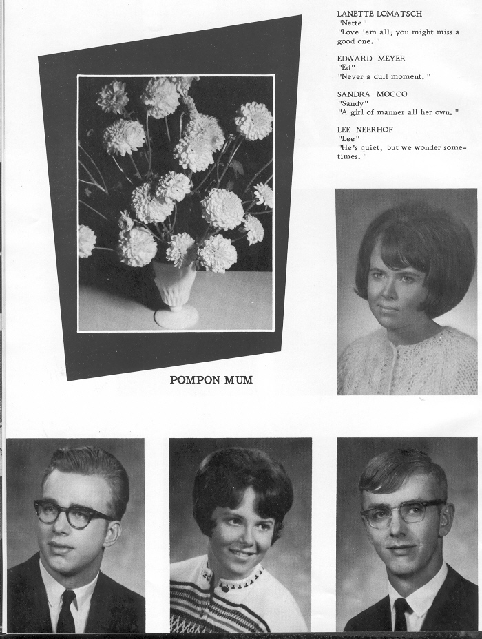 1967 Oostburg High School, Page 12: Lanette Lomatsch, Edward Meyer, Sandra Mocco, Lee Neerhof.