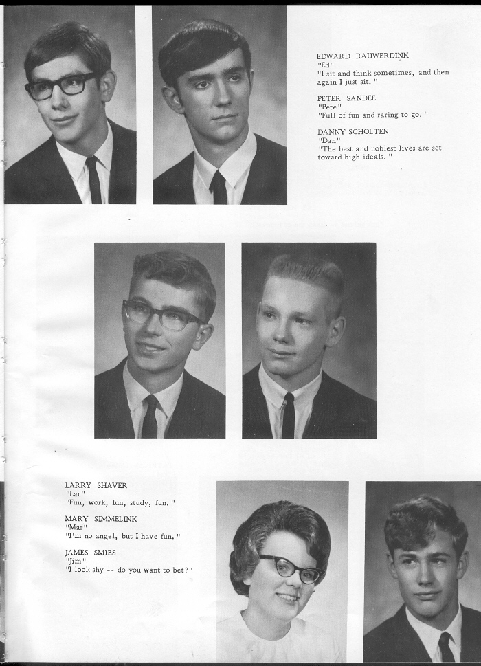 1967 Oostburg High School, Page 15: Edward Rauwerdink, Peter Sandee, Danny Scholten, Larry Shaver, Mary Simmelink, James Smies.