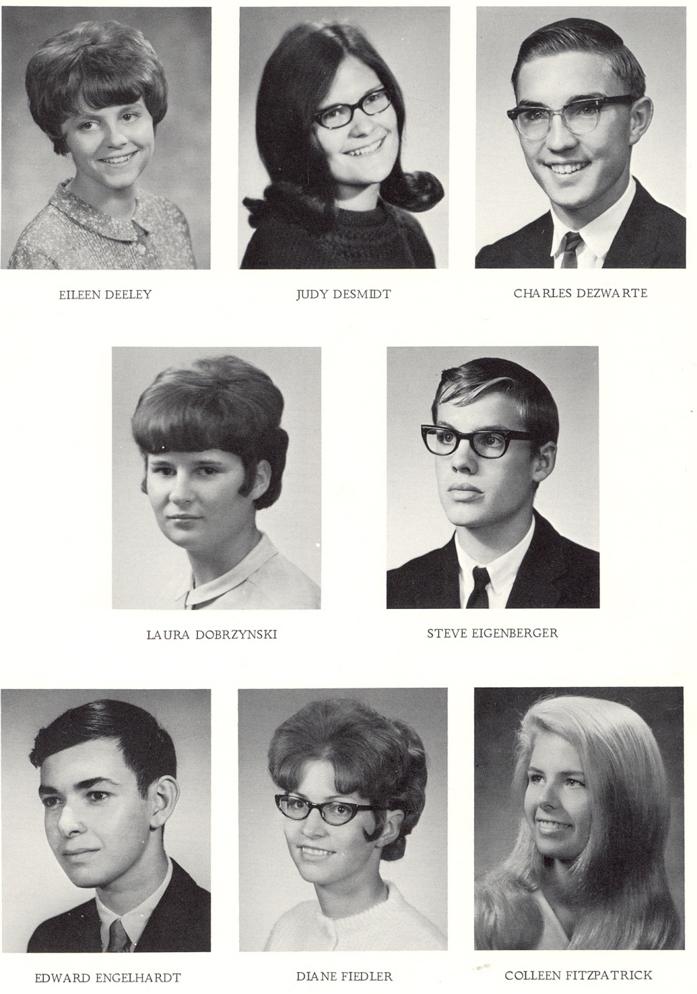 1967 Sheboygan Falls High School, Page 8: Eileen Deeley, Judy Desmidt, Charles Dezwarte, Laura Dobrzynski, Steve Eigenberter, Edward Engelhardt, Diane Fiedler, Colleen Fitzpatrick.