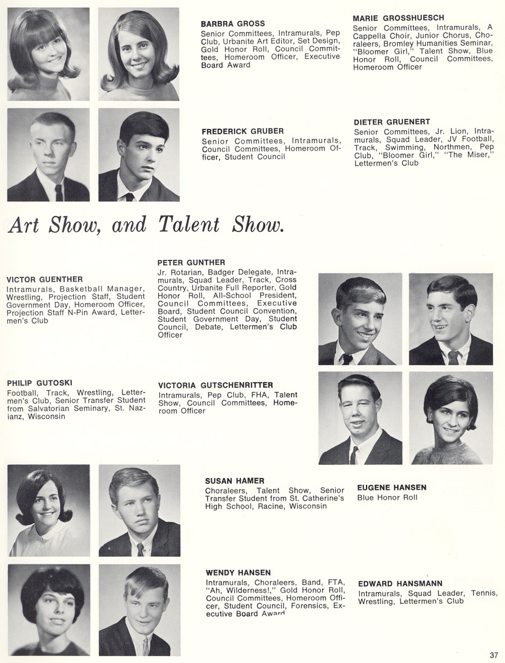 1967 Sheboygan North High School, Page 37: Barbra Gross, Marie Grosshuesch, Frederick Gruber, Dieter Gruenert, Victor Guenther, Peter Gunther, Philip Gutoski, Victoria Gutschenritter, Susan Hamer, Eugene Hansen, Wendy Hansen, Edward Hansmann.